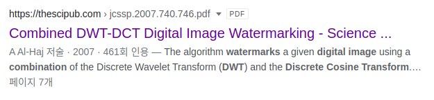 [ 검색 ] 역시 구글링 첫 번째 논문에 DWT-DCT image watermarking 이 나오네요